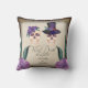 Dit elegante aangepaste kussen heeft een gotisch Halloween bruiloft thema. Bruid en bruidegom schedels, gedrukt in een waterverf schilderij ontwerp, worden geplaatst in het midden. De ene schedel draagt een hoge hoed en de andere heeft paarse bloemaccenten die overeenkomen met de bloemetjes in de onderste hoeken. De achtergrond is een licht, vervaagd perkament papier ontwerp met een gouden folie, stijl lijst. Een verduisterd zwart-oranje patroon grenst aan de uitnodiging. De zin "Totdat de dood ons scheidt" is afgedrukt in een prachtig schrift lettertype onder de schedels.