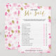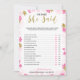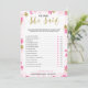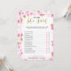 Een delicaat modern bloemendecor bruidsfeest "Hij zei Zij zei" spel, het ontwerp heeft een roze en gouden bloempatroon, deze kaart is gepersonaliseerd met de naam van de aanstaande bruid en de datum van het feest.