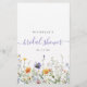 Dit ontwerp bevat een kleurrijke rand van waterverf wilde bloemen in tinten paars, goud, groen en blauw.