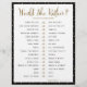 Eenvoudige zwart-wit lay-out met gouden polka stippen, "Zou Zij Liever" spel, checklist spel. Achtergrondkleur is aanpasbaar.