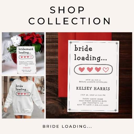 Eenvoudige, minimalistische bruidsmeisje laden voorstel kaart met rode harten. Personaliseer het met uw evenementengegevens.