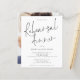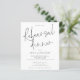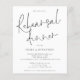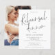 Proefhuwelijksdiner met foto-uitnodiging. Een voordelige BUDGET-alternatief in een kleiner formaat van 4,5 x 5,6” halfglans 110lbs gewicht, met een vergelijkbare dikte als een ansichtkaart (maar niet geschikt om als ansichtkaart te gebruiken). GELIEVE TE NOTEREN dat er EEN uitnodiging per vel is. Getoond in klassiek zwart en wit. Dit moderne ontwerp heeft een elegante informele script voor het proefhuwelijksdiner en de rest van de typografie kunt u gemakkelijk personaliseren. U kunt ook de tekst- en achtergrondkleur wijzigen indien gewenst via de optie Aanpassen. Vervang de voorbeeld foto op de achterzijde met uw eigen foto.