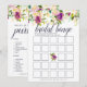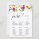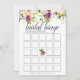 Elegante bruiloftsspelkaart die past bij onze 'Vibrant Bloom' bruiloftcollectie en waterverf bloemranden in weelderige juweeltonen bevat. Dubbelzijdige kaart geeft je twee spellen in één! Voorzijde bevat Bruiloftsbingo, met 'Wat zit er in je tas'. Personaliseer met de naam van de bruid en de datum van de bruiloft.