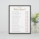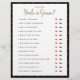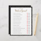 Eenvoudige zwart-wit lay-out met gouden polka stippen, "Raad wie" vragenlijst spel met een rode lippen of zwarte snor om het antwoord te omcirkelen. Zorg ervoor dat je de bruid en bruidegom de vragen vooraf stelt! Achtergrondkleur is aanpasbaar.