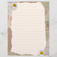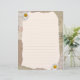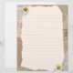 Mooie notities pagina in beige en bruine kleuren, versierd met daisy bloesems en postzegels op de achtergrond. Vul de regels met je eigen notities of een andere tekst.