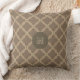 Mode bruin rustic geometrisch patroon op gestippeld achtergrondSierkussen. De brief van M op het centrum kan worden gepersonaliseerd.
