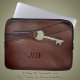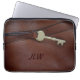 Bruin Faux leer met sleutel en monogram Laptop Sleeve