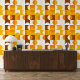 Bruin Wit Sinaasappel Geel Halve cirkelenpatroon Behang
