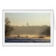 Brume de matin parmi James River, avec le sihlouette de carillon à l'arrière-plan.