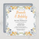 Deze vrijgezellenfeesten brunchuitnodiging heeft een unieke en trendy vierkante vorm met een elegant boho bloemenboeket. Accenten van perzik en zacht blauw met botanisch bladgroen lijst aan de voorkant van het vrijgezellenfeest nodigen uit. De achterkant van deze bruids brunch uitnodiging heeft een zachte zilvergrijze achtergrond met een dubbele off witte rand. Blij, chique en luchtig; ideaal voor een outdoor-thema vrijgezellenfeest brunch voor een herfst vrijgezellenfeest of een winter vrijgezellenfeest.