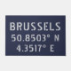 De coördinaten van de breedte- en lengtekaart van Brussel België in het stedelijke, grijze lettertype op donkerblauwe achtergrond