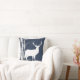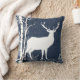 Als je van berkenbomen, herten, natuur en dieren in het wild houdt, zul je dol zijn op dit kussen in zwart, blauw en wit met een wit silhouethert met een bok aan de ene kant, doe op kussenrug, blauwe besneeuwde nachtelijke hemel, grote witte sneeuwvlokken en witte berkenbomen!