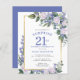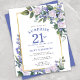 Eer een speciale vrouw met deze elegante en vrouwelijke Budget 21st Verjaardag Verrassingsfeestuitnodiging. Verrassing en 21e zijn geschreven in grote blauwe tekst. Verjaardagsviering volgt. De naam van de gehonoreerde gast is ook in blauwe hoofdletters. De verjaardagsviering details zijn omgeven door een chique gouden lijst. De blauwe bloemen en witte rozen zijn genesteld in diepgroene bladeren.