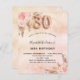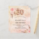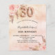 Een roze gouden, blos roze roestig nepmateriaal uitziende achtergrond. Versierd met roze gouden en roze bloemen, rozen, pampas gras. Personaliseer en voeg een naam en feestdetails toe. Nummer 30 is geschreven met een ballon stijl lettertype.