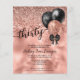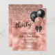 Moderne elegante zwarte roze roze roze roodbruin glitter Sparkle Confetti Ribbon Ballon 30th Birthday Invitation