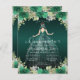 Floral Emerald Groen Prinses Jurk Glitter Sparkle QR Code RSVP Website 15e verjaardag Quinceanera Uitnodiging