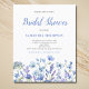 Budget blauwe bloemenbruids douche uitnodiging flyer. Elegant waterverf wildflower ontwerp. Gemakkelijk om de tekst te veranderen. Dit papier is dunner dan kaartpapier.