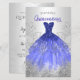 Budget Silver Royal Blue Sparkle Dress Quinceañera Quince Uitnodiging