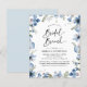 Deze elegante uitnodiging van de collecties van Florals van de Past kenmerkt stoffige blauwe waterverf bloemen met delicate groene wijnstokken, die met een modern manuscriptdoopvont worden geparineerd. Ideaal voor elk seizoen. Om vooruitgangsveranderingen aan te brengen, uitgezocht pas aan -> geef het gebruiken van het hulpmiddel van het Ontwerp uit.