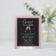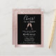 Op een achtergrond van een wazige, roze metalen folie, biedt onze elegante 21e Birthday-uitnodiging een vrouwelijke blush glitter ombre bedekking met een borrelende champagnebril die de 21e verjaardag uithaalt. In een zwart lijst met een gouden grens van het roos, zult u voorbeeldtekst vinden die u op de verpersoonlijkingssjabloon kunt gemakkelijk herzien.