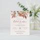 Een moderne bohemiaanse begrotingsuitnodiging met waterverf bloemen en valbladeren in oorrijke tinten zoals roestbruin, verbrand sinaasappel en terracotta. Ideale keuze voor herfstbruiloften.
