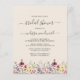 Dit elegante boho floral design kenmerkt een rand van waterverf wildbloemen op een crèmeachtergrond. De woorden "vrijgezellenfeest" en de naam van de bruid-aan-te zijn verschijnen in het kalligrafische manuscript van de houtskool grijs met decoratieve spoelen aan het begin en het eind, met de resterende tekst in serif doopvont. Een coördinerend wildbloempatroon versiert de achterkant van de uitnodiging. (Om de swashes te houden, vervang slechts de brieven van de bruid aan zijn naam, verlatend de symbolen op zijn plaats.)
