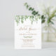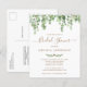 Nodig uw vrienden en familie uit voor uw vrijgezellenfeest met deze eucalyptusgroene, elegante maar casual bruiddoucheuitnodigingen briefkaarten. Deze briefkaarten van de budgettrouwuitnodiging moeten als te grote briefkaarten worden gemaild, zodat kunnen de standaardverzendkosten worden gemaakt, maar zij hebben geen envelop of een retouradreslabel nodig. Pas aan met naam, vrijgezellenfeest datum, plaats en andere info. Voeg website en andere informatie op de rug toe. Deze unieke uitnodigingen tot het douchen van de bruine bruid zullen een blijvende indruk maken. COPYRIGHT © 2020 Judy Burrows, Black Dog Art - Alle rechten voorbehouden. Budget Botanische Greenery Bridal Shower