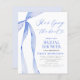 Vier de bruid-to-be met een prachtige blauwe "Bow, She's Tying the Knot" bruids douche uitnodiging. Dit charmante ontwerp heeft een zacht blauw kleurenpalet en een delicaat boegmotief, dat de aanstaande bruiloft op een stijlvolle en speelse manier symboliseert. Perfect voor een verfijnde maar leuke viering, deze uitnodiging zet de toon voor een elegante bijeenkomst gevuld met liefde, gelach en opwinding. Gasten zullen blij zijn om de bruid te eren terwijl ze zich voorbereidt op het stropdassen van de knoop in stijl.