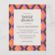 Vier de bruid-to-be met deze gedurfde en moderne bruidsdoucheuitnodiging met een levendig geometrisch patroon in tinten van sinaasappel, roze en bruin. Het stijlvolle ontwerp combineert retro-esthetiek met hedendaagse elegantie en creëert een opvallende achtergrond voor uw evenementdetails. Ideaal voor bruiden die houden van unieke, statement-making briefpapier. Perfect voor een leuke en levendige pre-bruiloft bijeenkomst.