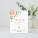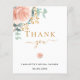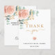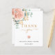 Een moderne en elegante bruidsshowers bedankkaart. Een chic witte achtergrond. Versierd met roosgouden en blozende roze rozen, bloemen en groene watercolor eucalyptus bladeren, takjes, groenblijmende planten en namaak gouden takjes. Zwarte en gouden letters. Op de voorkant de tekst: Bedankt, naam en datum.