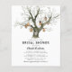 Uitnodigingen voor een bruiloft in de stijl van een ruwe bos met waterverf eikenboomstam, een uitgesneden hart met de initialen van het paar, vintage lantaarns en een elegante bruidsmeisjes template, ideaal voor een budget.