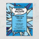 Een leuke, koele en trendy stripboek-geïnspireerde uitnodiging voor een bruiloftsfeest op budget die de wham, zap, pow toevoegt aan elk feest van een superheldbruid-to-be. De achterkant heeft een passend blauw polka stippenpatroon. Ontworpen door Thisisnotme©