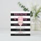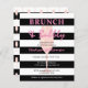 Zwart-witte streep met roze Brunch en roze bruin champagneglas. Uitnodiging voor douche