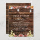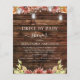 Het Rustic Land van de begroting buiten op Donker Hout met Bourgogne, Oranje en Gele Zonnebloemen met Mason Jars op String Light Autumn of Herfst Drive By Baby Shower Invitations - omvat mooie en elegante scripttypografie voor de speciale Moeder om te worden gevierd.