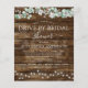 Budget Rustieke Landelijke Buitenopstelling op Donker Hout met Groene Tinten Eucalyptus en Katoen met Potten aan Slingerlampjes Lent, Zomer, Herfst of Najaar Trouwfeest Drive by Bruids Shower Brunch en Bubbelwijn Uitnodigingen - inclusief mooie en elegante script typografie voor de speciale Bruid-to-be viering.