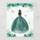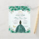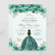 Emerald Green Gold Floral Princess Tiara Quinceañera Uitnodiging