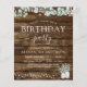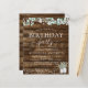 Budget Rustieke Landelijke Buitenkant op Donker Hout met Groene Eucalyptus en Katoen met Potjes aan Slingerlicht Lente, Zomer, Herfst of Winter Verjaardagsuitnodigingen - inclusief mooie en elegante script typografie voor de speciale verjaardagsviering.