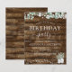 Budget Rustic Country Buiten op Donker Hout met Groene Planten Eucalyptus en Katoen met Potjes aan Slingerlicht Lente, Zomer, Herfst of Winter Verjaardagsuitnodigingen - inclusief mooie en elegante script typografie voor de speciale verjaardagsfeest viering.