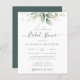 Mooie uitnodiging voor bruidsdouche met waterverf eucalyptus en gouden bladeren.