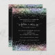 Toekomstige zwarte uitnodiging van mevrouw Rainbow Glitter Vrijgezellenfeest. Een budgetprijs voor KLEINE 4,5 x 5,6 inch. Verkrijgbaar in een SEMI GLOSS 110 lb KAART STOCK dat de standaardoptie is (aanbevolen voor uitnodigingen), OF een SATIN FINISH 80 lb THINER PAPER STOCK (ideaal voor behuizingen). De enveloppen zijn een facultatieve extra en zijn lichtjes groter dan de kaartgrootte. De Toekomstige Mrs. is in een artsy geplaatst manuscript met ring en hartmotieven en de rest van de tekst u kunt gemakkelijk personaliseren. De boven- en onderranden aan beide zijden zijn begrensd met glitter in regenboogkleuren. Met witte typografie op een zwarte achtergrond.