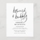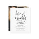 Deze budgetbruidelijke doucheuitnodiging kenmerkt schitterende kalligrafie, moderne typografie en een aangepaste foto. We hebben gekozen voor deze klassieke zwart-witte combinatie voor bruiden die een chique, minimalistische blik willen. Bovenaan de kaart staat "brunch + bubbly" met de hand geschreven in een moderne letterstijl, met de naam van de bruid hieronder in zans-serif hoofdletters. Een lijnverdeler scheidt het van de rest van de gebeurtenisinformatie. De feestelijke details bevinden zich in een trendy combinatie van serif in kleine letters en hoofdletters. De locatie bevindt zich allemaal in een lager hoesje. De achterkant van de kaarten is voorzien van een foto van uw keuze. In wit, is de "toekomstige mrs" in het schrijven van het handtekening-stijl manuscript en de achternaam is onderaan. Dit maakt van de uitnodiging een prachtige keepslag om op koelkasten, mantelstukken, boekenplanken, koffietafels, of fotoborden te worden getoond! Bewerk de tekst eenvoudig om uniek te zijn voor uw gebeurtenis. Er zijn meer kleurvariaties beschikbaar in onze winkel, of u kunt uw kleur kiezen om de toon voor uw bruiloft in te stellen. Als onderdeel van de budgetselectie op Zazzle, is dit blad geen standaard nodig grootte of papierkwaliteit. Als u dit ontwerp op een uitnodigingskaart wilt, kunt u het in onze winkel vinden of de Zazzle Make Machine gebruiken om het over te brengen op het product van uw keuze. Je kunt me met alle vragen berichten, ik zal graag helpen.