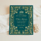 Modern Classic Elegant Glam Emerald Green Floral Botanical Gold Lijst Princess Tiara 15th Birthday Quinceanera Invitation
