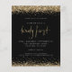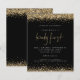 Gold Glitter Black 21st Party Invitation. Een budgetvriendelijk KLEINER 4,5 x 5,6-inch alternatief. Verkrijgbaar in een SEMI GLOSS 110 lb KAART STOCK of een SATIN FINISH 80 lb THINER PAPER STOCK. Enveloppen zijn een optionele extra. Elegant goudfaux glitter confetti border zijn bovenaan en onderaan en ook achteraan op een klassieke zwarte achtergrond. 21ste wordt geplaatst in een moderne handschriftenstijl. Pas de rest van de tekst eenvoudig aan je eigen tekst aan.