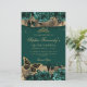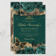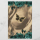 Budget Elegant Emerald Green Gold Floral Butterflies Quinceañera Quince Uitnodiging