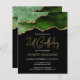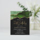 Deze trendy 21ste verjaardagsuitnodiging kenmerkt een afbeelding van de waterverf van een agate geode in schaduwen van groen met faux goudhoogtepunten. De woorden "21st Birthday" staan in faux goudglitter in decoratief modern handschrift. Pas het met de naam van de eer in gouden gekleurde teksten en de details in wit aan. Aan de achterkant verschijnt hetzelfde groene grijze afbeelding.
