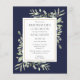 Met een delicate waterverf bladeren op een blauw marineschopje, kan de lunchuitnodiging van deze schitterende budgetbridesmaids worden gepersonaliseerd met je speciale evenementgegevens. Ontworpen door: Thisnotme©