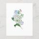 Blauwe hydrangebloemen en bloemen met blozen rozen versieren een gouden ovale lijst. Een open en airy modern botanisch.