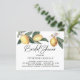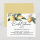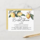 Elegant groen, citroenen en witte bloemen creëer een elegant stuk bovenaan deze bruiddoucheuitnodiging.