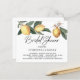 Elegant groen, citroenen en witte bloemen creëer een elegant stuk bovenaan deze bruiddoucheuitnodiging.