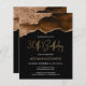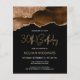 Deze trendy 30e verjaardagsuitnodiging bevat een waterverf afbeelding van een geo van een geel in rijke tinten van mochtophop bruin met faux goudglitter hoogtepunten. De woorden "30th Birthday" staan in faux goudglitter in decoratief modern handschrift. Pas het met de naam van de eer in gouden gekleurde teksten en de details in wit aan. Aan de achterzijde wordt hetzelfde agate afbeelding weergegeven.